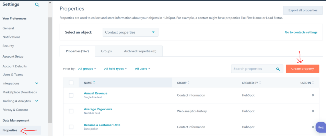 Click on Properties in the left-hand navigation and then click Create Property