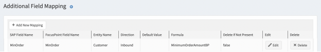 Additional field mapping needed with the SAP Field Name of MinOrder / FocusPoint Field Name of MinOrder / sending to the FocusPoint website