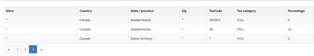 So, a third entry should be added. This entry has a wildcard in the TaxCode field to apply the standard retail Saskatchewan tax rate of 11% to all customers in Saskatchewan that do not have a tax code specified.