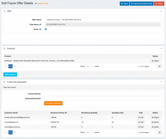 Note: When you click delete in the customer, it just deletes the qty, not the actual email/bp, from the table.
