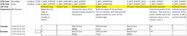 * The attributes need to be setup in the options table in SAP before filling uploading this DTW- For this DTW you need to fill out the below;