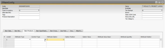 * * U\_MITI\_ATROPT – this is predefined in the SAP table. An Attribute Option has to be defined in the SAP FPItemConfig table before the DTW is uploaded