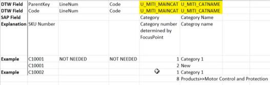 - We only need the ParentKey, U_MITI_MAINCAT, and U_MITI_CATNAME filled out.