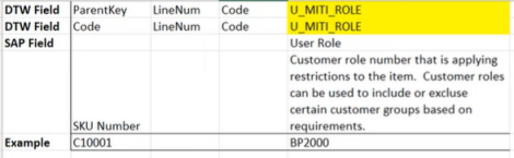 - We only need the ParentKey and U_MITI_ITEM filled out on this tab.