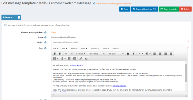 - The tokens will automatically populate (Store Name, Store URL, Store Email)