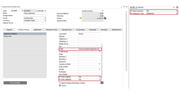 * The first step is to web-enable the Business Partner and then the Contact in SAP that should have access to the site (typically this is part of the DTW process since you most likely have a lot of BPs and contacts that will need access to shop your ecommerce site)