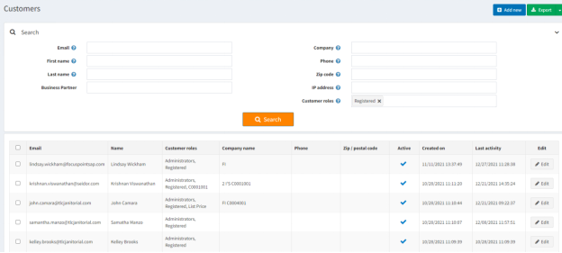 * Select the customer you want to place a test order for from your customer list: * [https://yourURLhere.focuspointsap.com/Admin/Customer/List](https://yourURLhere.focuspointsap.com/Admin/Customer/List) -