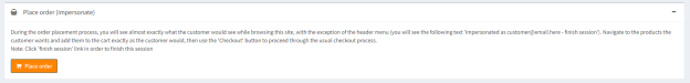 * ·Once you click Edit to see the customer’s profile, scroll down until you see “Place Order (Impersonate)” Click the orange Place Order button.
