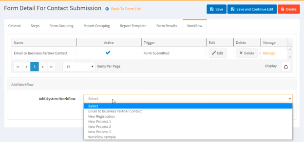 - Select from ‘Add System Workflow’ dropdown