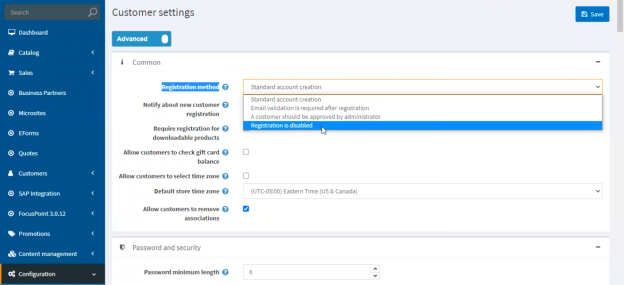 - Customer Settings (FP) → Registration method -