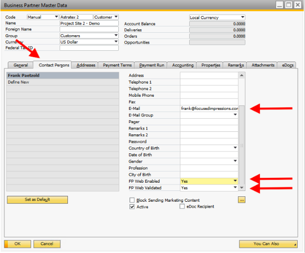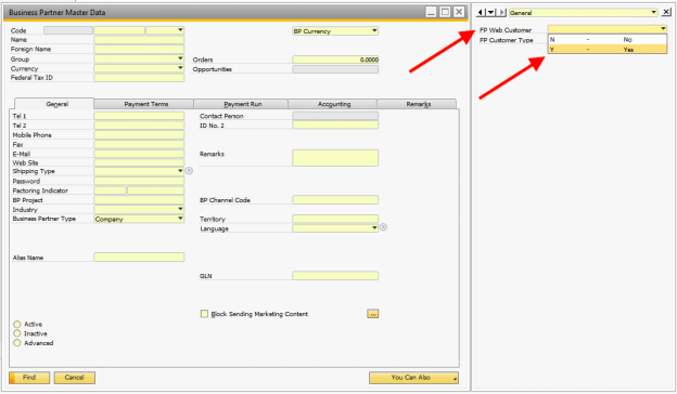 FP Web Customer = Business Partner