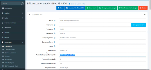 - ERPUserId = SAP Business Partner #