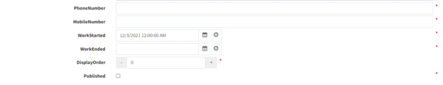 - Check the box for Published to have the employee displayed on the site