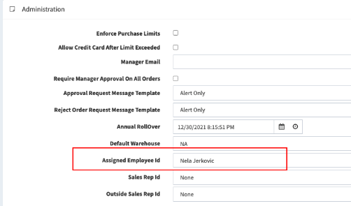 b. Assigned Employee Id - Select the Sales Rep employee’s own name from the dropdown (i.e. If you are setting up a sales rep for Customer Name select their name from the dropdown)