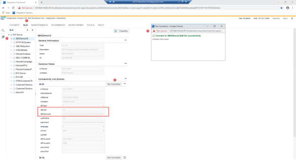 a. If database connection is not successful check if the B1i user password is the same in Bi1F and SAP