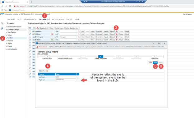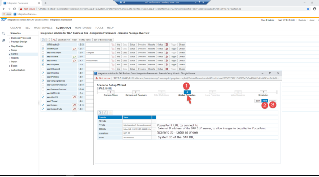 5. Set up Global Properties for the installation of the objects – Scenarios/Control/>>>/ click on next until you see Global Properties/Save/Click on Next/Deploy