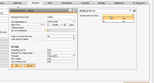 Open the user defined window – it then shows FI Payment On Terms